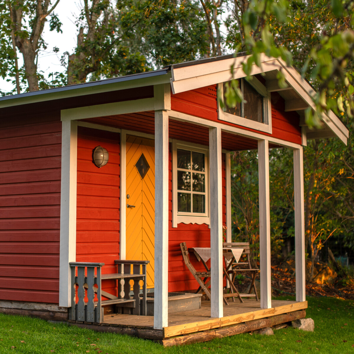 Skrivarstugan är sparsamt inredd och passar dig som letar efter en enkel och lugn plats att landa på. Utsikten inspirerar och på den privata verandan kan du avnjuta både morgonkaffet och solnedgången. Storlek: 8 kvadratmeter.